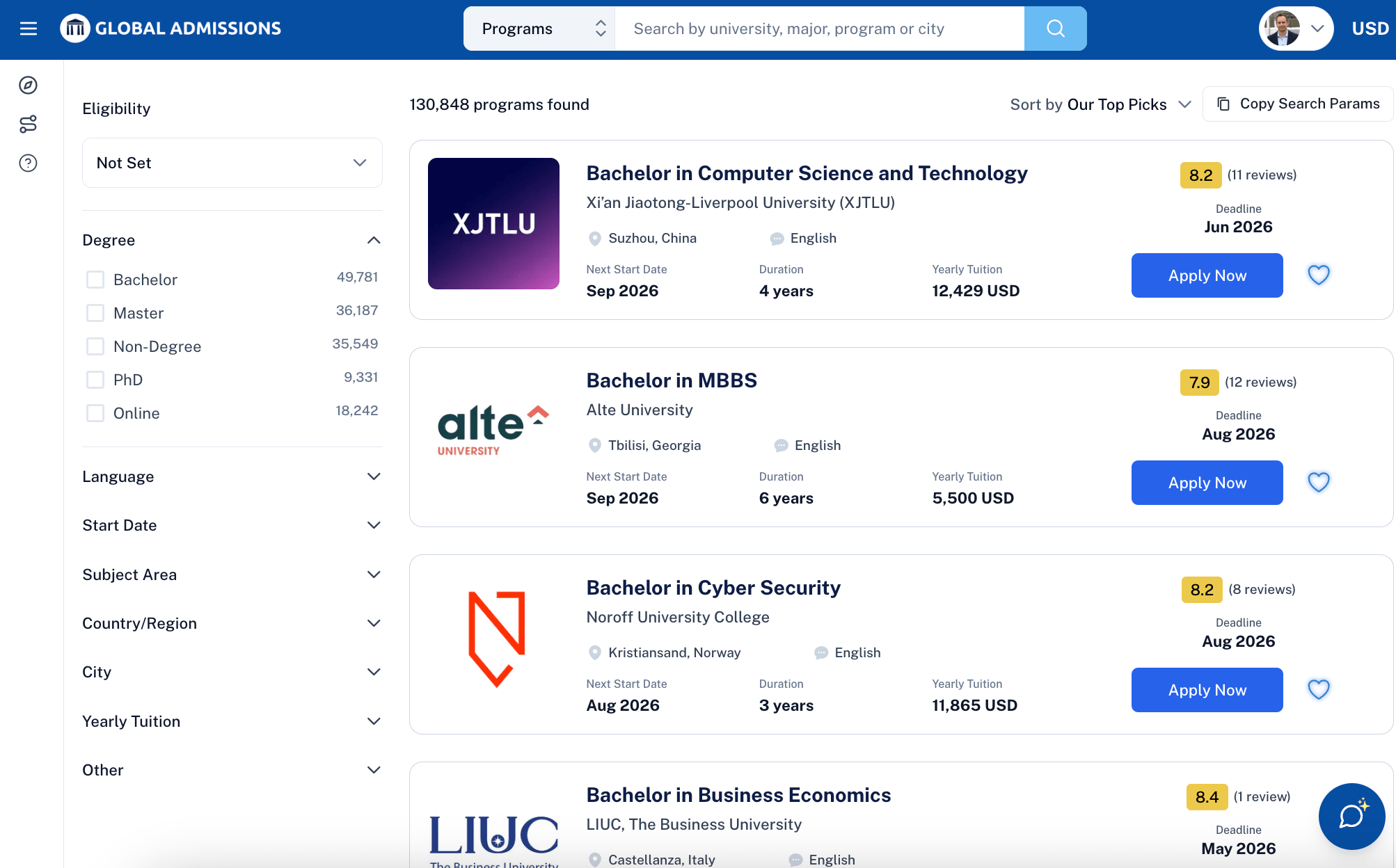 - You can explore more options on Global Admissions platform.